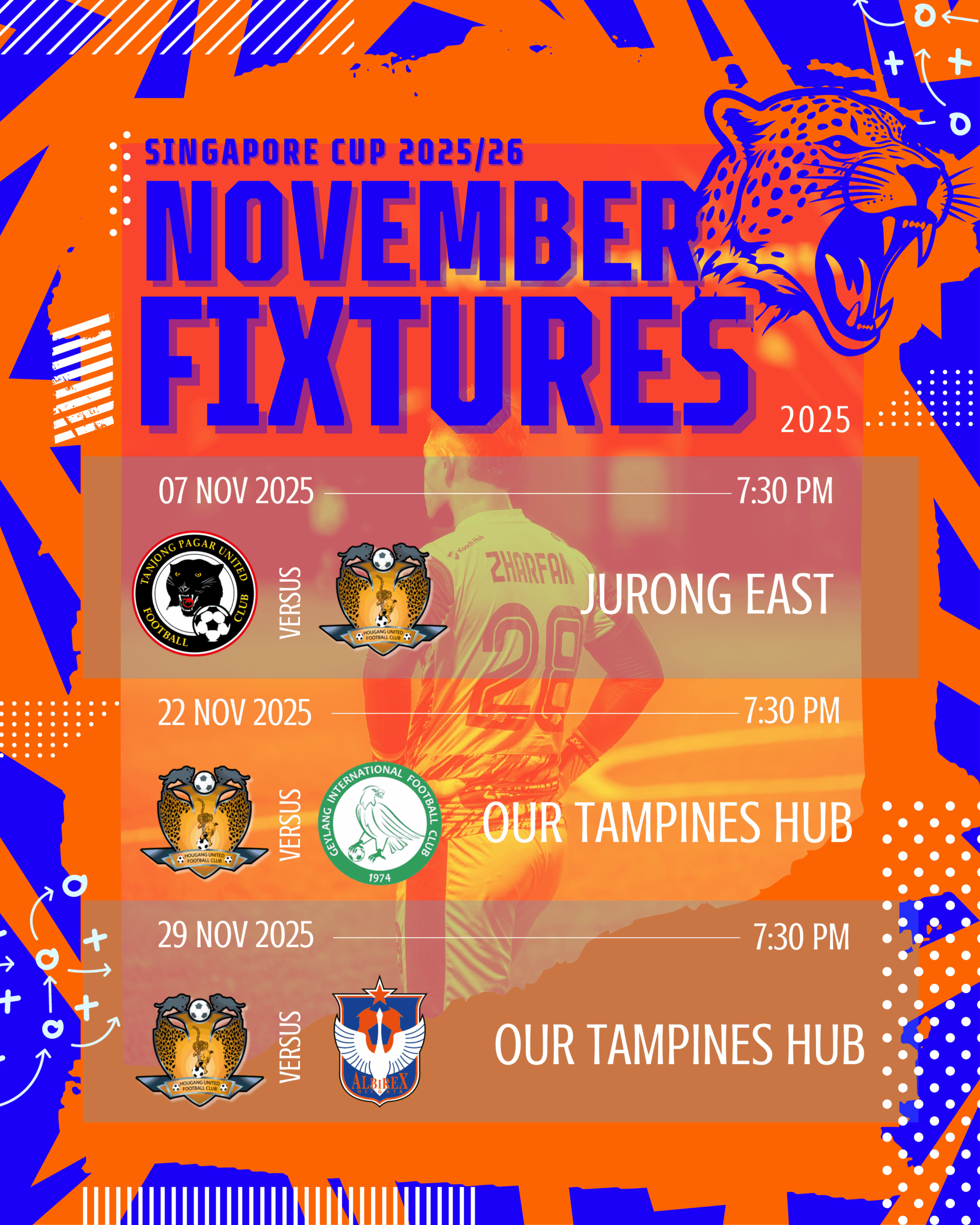 📅 Mark your calendars, Cheetahs! Here are our Singapore Cup fixtures for November 🐆⚽ Let’s fight together every matchday! 💪🟠🔵 Merchandise: https://shopee.sg/hougangunited #HGFC#HomeOfTheCheetahs#HougangUnited#SPL#SupportLocalFootball#HGFC25#CheetahSpirit#1H1H#Singaporepremierleague#Singaporecup#SupportLocal Continue reading